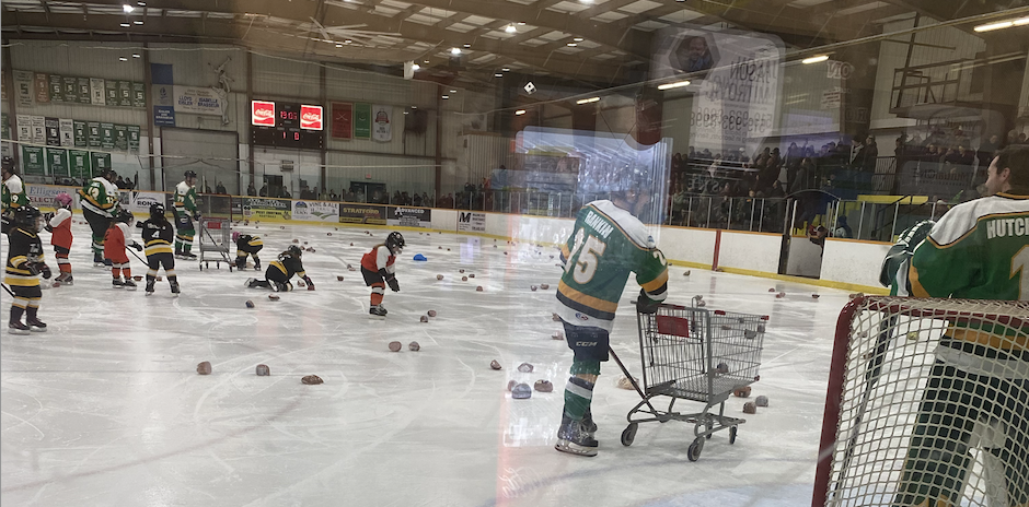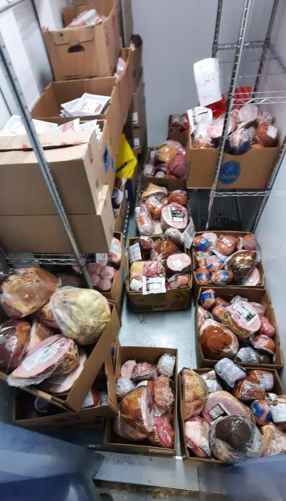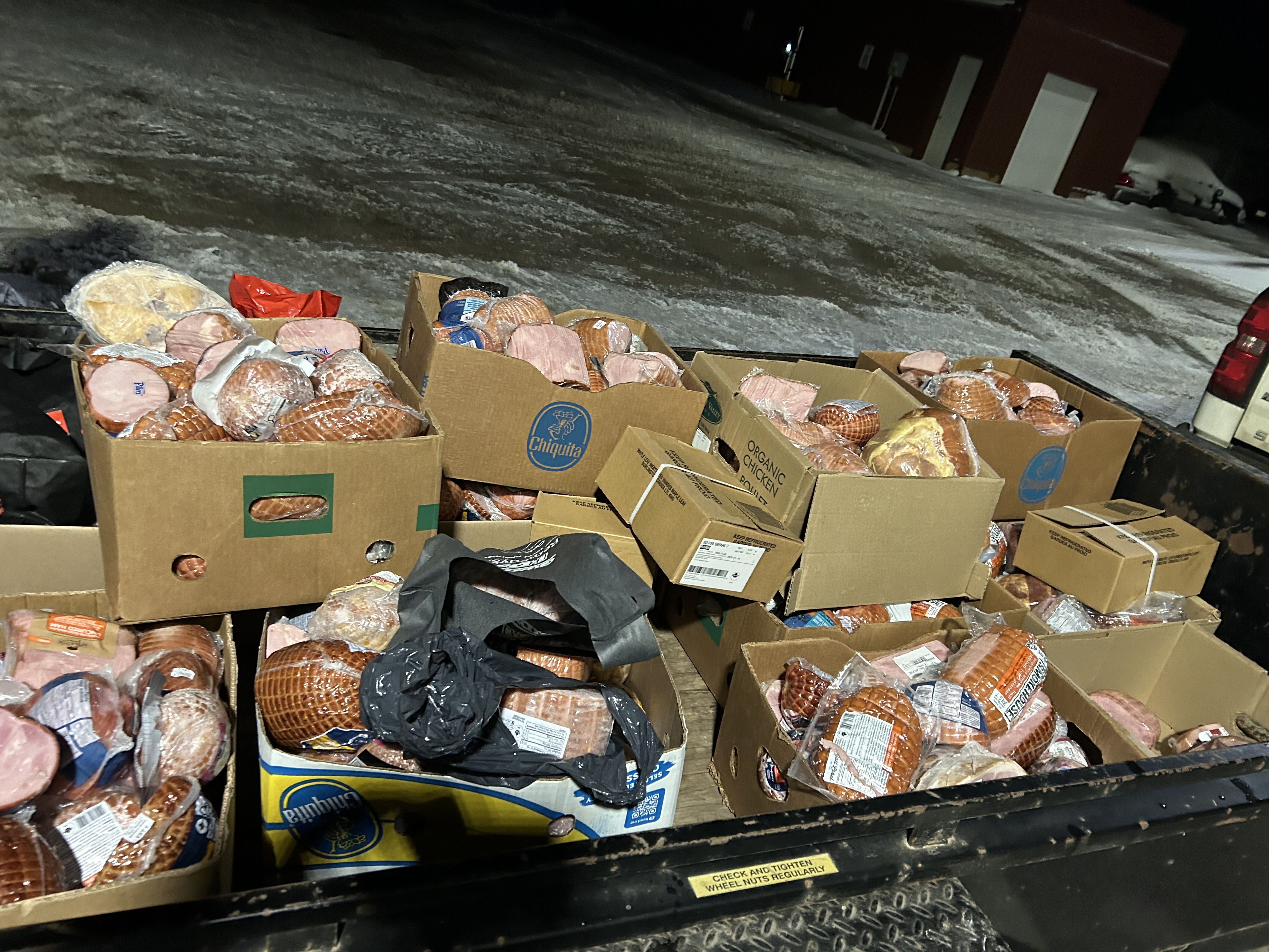 For the last several years, the Food Bank has partnered with the Seaforth Centenaires for Ham Slam. What could be more Canadian – hockey and pork?! When the home team scores their first goal, hams get thrown on the ice. It is something to see! This year 1087 hams were donated.